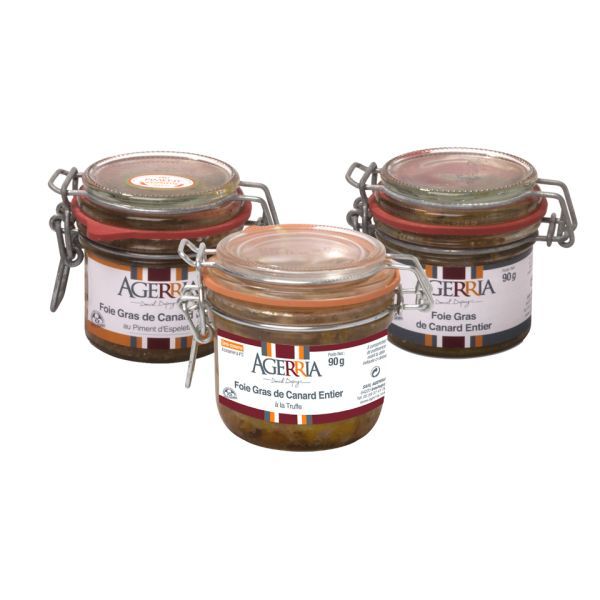 Trio foie gras entiers mi-cuits (nature, piment et truffe)