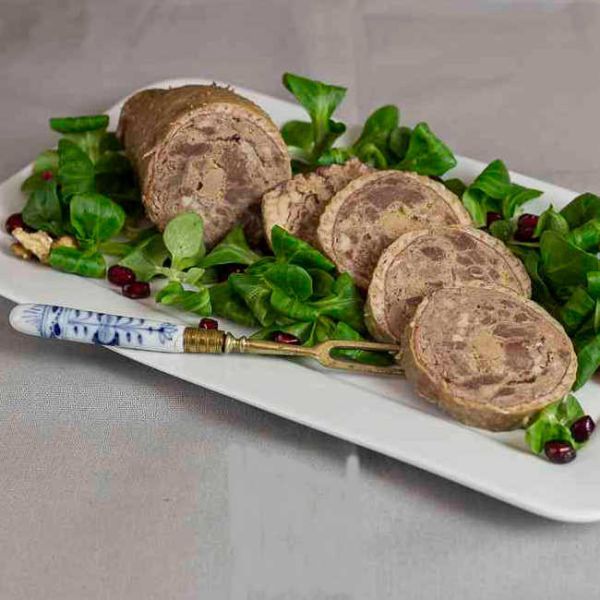 maigre de porc, foie gras de canard, porto, ail, œuf, sel, poivre, sucre, muscade.